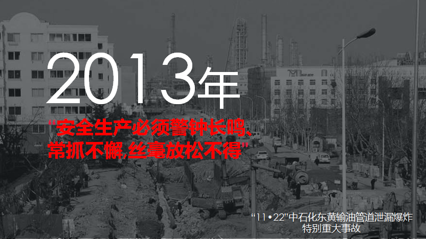 ——2013年11月24日,在考察“11·22”中石化東黃輸油管道泄漏爆炸特別重大事故搶險工作時強(qiáng)調(diào)