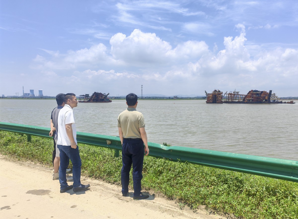 檢查組一行對贛撫尾閭作業(yè)區(qū)10余條采砂船、運力船及停靠在河岸線的浮吊等設(shè)備的停靠情況進行了檢查,對船只錨繩等安全設(shè)備隱患進行了排查,對船舶工作人員的在崗情況、巡查工作進行了檢查。
