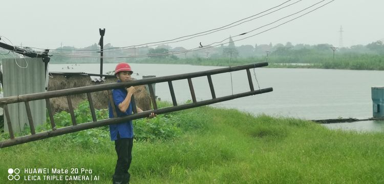 作為砂場班長,熊富華第一個沖鋒在前,考慮到楊家灘監(jiān)控設(shè)備位置比較低,他立馬戴上安全帽,扛起樓梯,向電源總開關(guān)走去。我們看在眼里,急在心里,這么大的雨多危險啊,我們連連說道:“熊班長,雨太大了,等小點再去吧。”可熊班長卻笑笑說:“沒事沒事,設(shè)備要緊,我有經(jīng)驗,放心吧。”