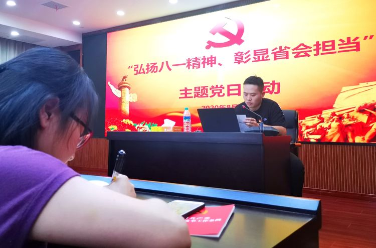 南昌贛昌砂石有限公司經(jīng)營分公司黨支部聯(lián)合機關(guān)黨支部于2020年8月3日下午在公司2206會議室召開“弘揚八一精神、彰顯省會擔當”主題黨日活動,活動由經(jīng)營分公司黨支部書記熊志主持,機關(guān)黨支部、經(jīng)營分公司黨支部全體黨員,入黨積極分子參加。