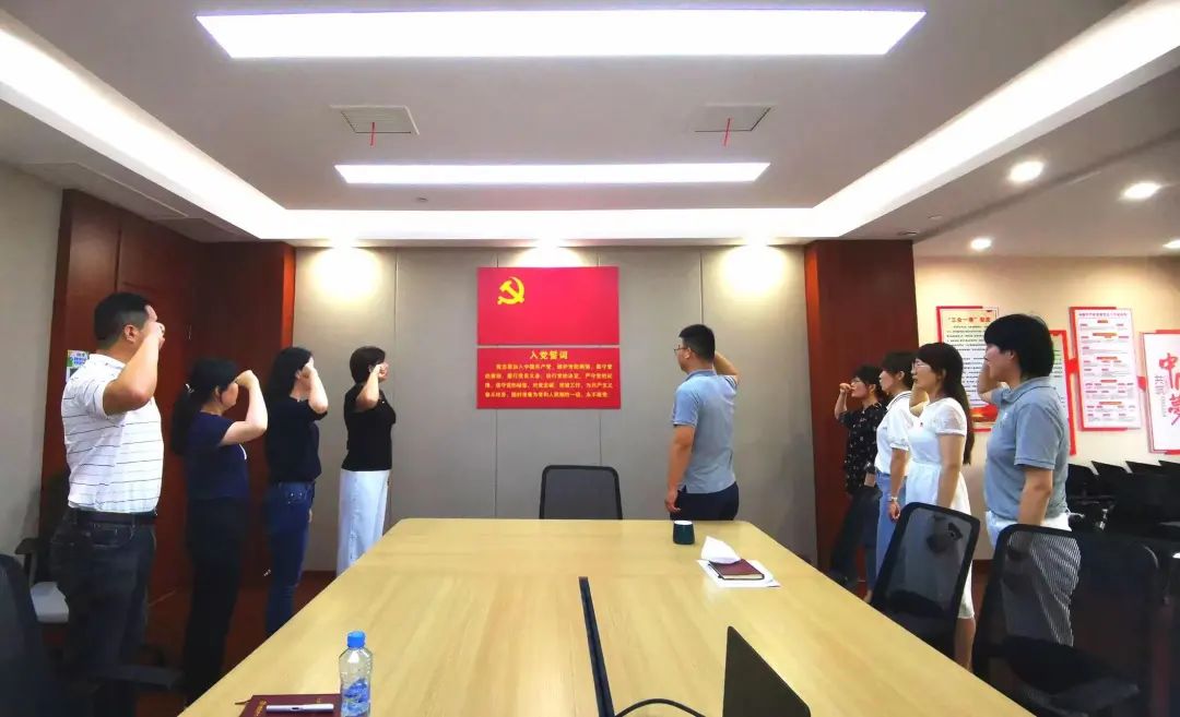 會議最后,熊澄書記帶領轉為正式黨員的八位同志進行入黨宣誓。