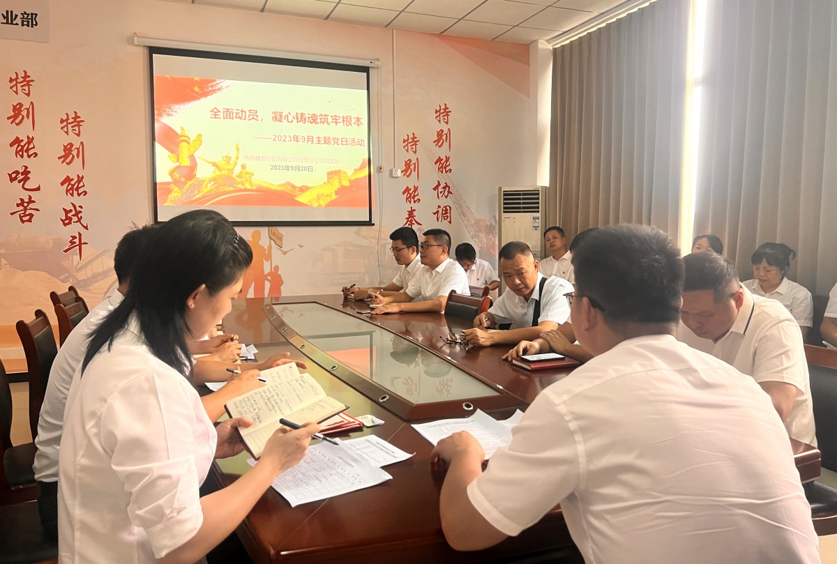 為深入學習貫徹習近平新時代中國特色社會主義思想和黨的二十大精神,9月20日,南昌贛昌砂石有限公司經(jīng)營分公司黨支部組織開展了“全面動員,凝心鑄魂筑牢根本”主題黨日活動,活動由黨支部書記熊澄主持,支部全體黨員、入黨積極分子參加。