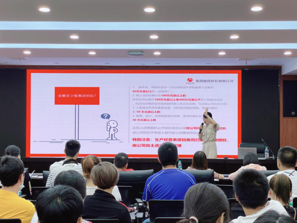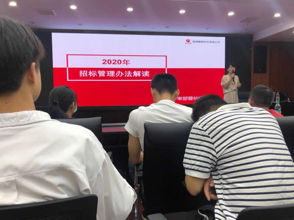 6月30日上午,贛昌砂石公司招標(biāo)評審部在22樓會議室召開《2020年招標(biāo)管理辦法解讀》培訓(xùn)講座,主要針對員工在招標(biāo)工作中遇到的問題、流程等方面進行詳細解讀,公司約60余人參加了本次培訓(xùn)。