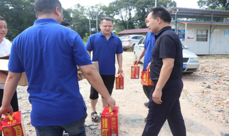 7月16日上午,贛昌砂石公司常務(wù)副總經(jīng)理朱鳳,副總經(jīng)理張軍茂分別前往高新片區(qū)砂場、安義子公司長埠砂場,給高溫汛期堅守在防汛一線的工作人員送去了防暑降溫物品。