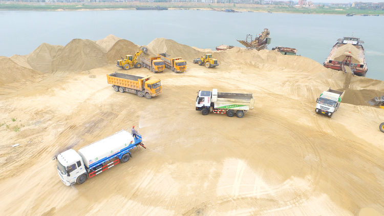 堤岸下,雜草茂盛地生長著。雜草前方有幾處板房,這些板房由一個(gè)小池塘隔開,靠近堤岸的一側(cè)是倉庫和停車棚,靠近贛江的一側(cè)是磅房和休息室,磅房再往前就是連綿的砂丘了。砂丘在陽光的映照下閃閃發(fā)光,仿佛一座座金山。砂丘的西邊是一大片農(nóng)田,潮水尚未退去,田里還是一片汪洋。