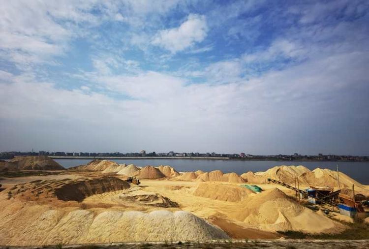 我初來砂場時(shí),正是盛夏時(shí)節(jié)。那一天天氣晴朗,萬里無云。站在堤上放眼望去,砂場的風(fēng)景一覽無遺。