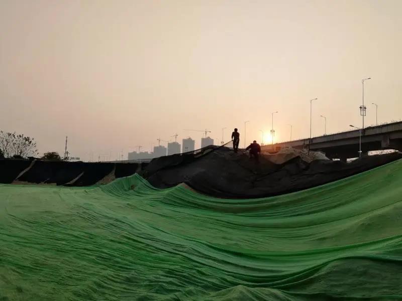 經(jīng)過(guò)了一下午和一晚上的工作,終于給裸露的砂堆都披上了一件“新衣”,大家站立在砂堆前,看著勞動(dòng)成果,互相拍了拍彼此的肩膀,此刻的他們享受著片刻的寧?kù)o,嘴角流露出工作完成時(shí)的喜悅。