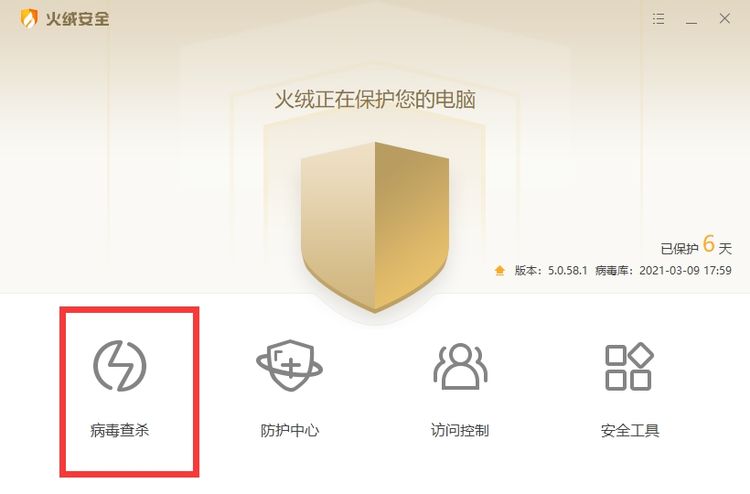 打開“火絨安全”軟件“病毒查殺”,選擇“全盤查殺”進行電腦殺毒,一般一周進行一次電腦全盤查殺病毒。