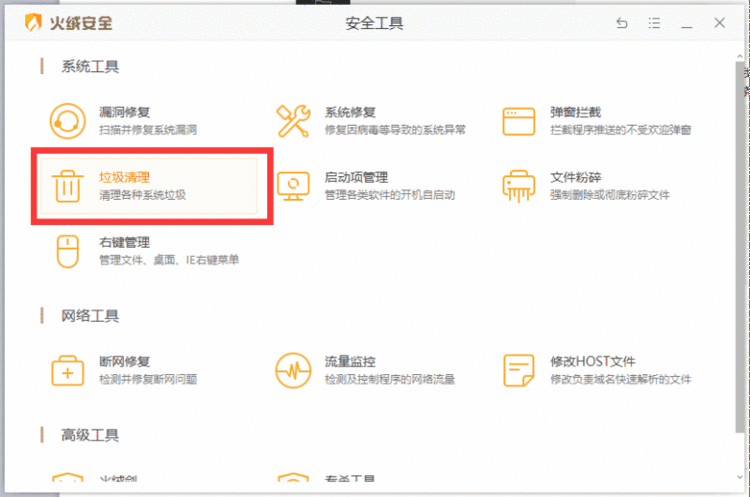 然后,再用“火絨安全”殺毒軟件里面的“立即清理”工具對電腦的緩存垃圾進行一鍵清理就可以了。