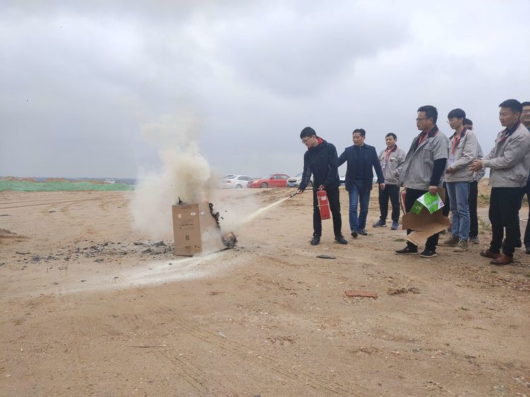 隨后,東新片區(qū)清湖砂場班長陶小毛規(guī)范講解了滅火器的使用方法,萬長征做了補充以及注意事項說明,并模擬了砂場火災(zāi)發(fā)生后如何正確使用滅火器將火情撲滅。