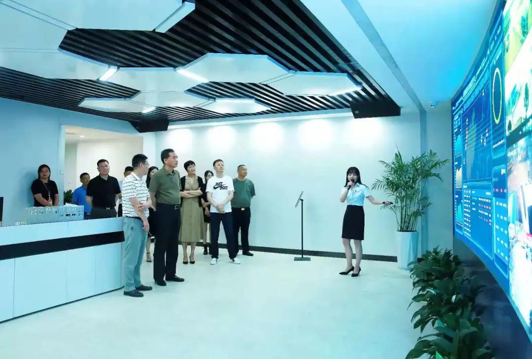 鄧建新一行參觀了贛昌砂石公司辦公大樓,并在監(jiān)控指揮中心通過監(jiān)控視頻視察了一線生產(chǎn)經(jīng)營情況,詳細(xì)地了解了砂石出庫流程。