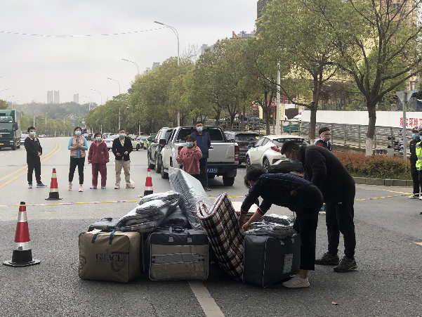 3月19日下午,在備齊一切所需生活物資后,袁婧瑛、朱可杰、鄒磊、熊澄將物資運(yùn)送至灣里與新建交界的卡口。在與卡口值班民警溝通后,他們隔著道卡將物資轉(zhuǎn)送到新建區(qū)分公司員工手中,其中有對(duì)方急需的被褥等。但因防疫政策要求,采買的一車油米蔬果未能送達(dá)。