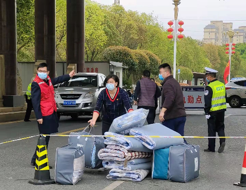 接過被褥,新建區(qū)分公司鄺鄢妍喉嚨哽咽地說道:“謝謝,謝謝!請(qǐng)大家放心,我們都挺好,沒事的,疫情很快就會(huì)過去的”。