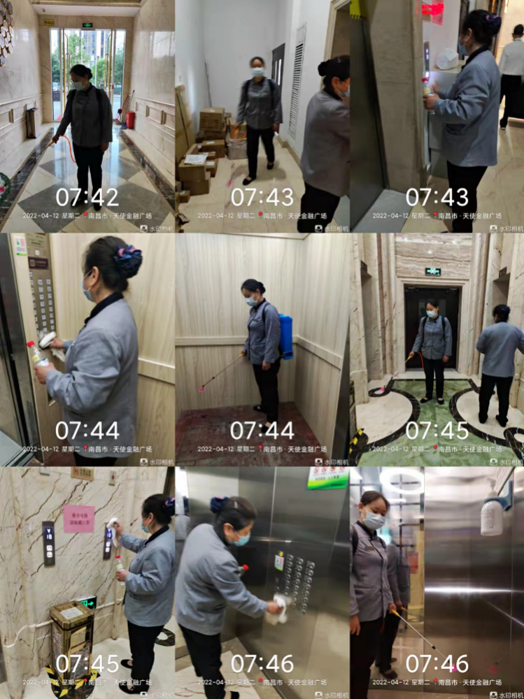 公司部分保潔人員處于封控區(qū),不能準(zhǔn)時(shí)到崗,為進(jìn)一步加強(qiáng)疫情期間的安全管理,確保辦公安全衛(wèi)生,在保潔人手緊張的情況下,綜合部積極協(xié)調(diào)物業(yè)公司,每日優(yōu)先保障公司消殺工作。每天一大早,在公司大廳、走廊、電梯等區(qū)域,都能看到保潔人員忙碌的身影,掃、噴、擦、拖,一個(gè)角落也不放過(guò),確保在上班之前對(duì)辦公樓進(jìn)行全方位清掃、消殺,筑牢公司安全屏障。在高強(qiáng)度的工作之下,保潔、物業(yè)人員每日還需抽出時(shí)間完成一次核酸,以達(dá)到保潔、物業(yè)人員上崗需持24小時(shí)之內(nèi)核酸檢測(cè)陰性報(bào)告的防疫要求。