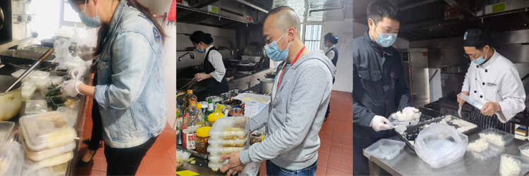 為了防止人員聚齊,近段時(shí)間食堂未開(kāi)放堂食,采取打包的形式為員工供應(yīng)早午餐。考慮到菜品提前太久打包會(huì)放涼及串味,每到了用餐的時(shí)間段,綜合部在崗職工都紛紛上陣,協(xié)助打包盒飯,提高盒飯打包速度,確保快速完成所有盒飯的打包工作,及時(shí)將打包好的盒飯發(fā)放至員工手中,不影響菜品口感。