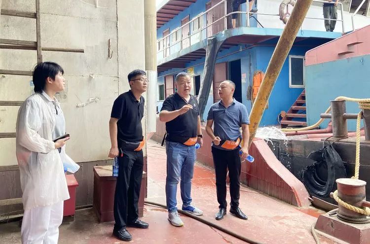 7月28日,蔡安煜一行趕赴湖南省岳陽(yáng)市湘陰縣湘資砂石資源有限公司考察交流。抵達(dá)該公司采區(qū)作業(yè)現(xiàn)場(chǎng)后,在湖南洞庭湖資源控股集團(tuán)有限公司副總經(jīng)理鐘浩、湘陰縣湘資砂石資源有限公司總經(jīng)理胡鵬的帶領(lǐng)下,蔡安煜一行登船參觀了采區(qū)砂石生產(chǎn)作業(yè)情況。