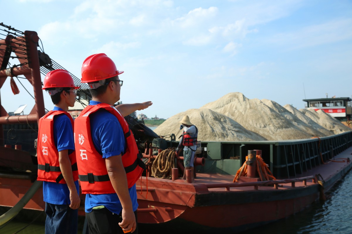 汗水從他們的臉上滑落,流到眼睛里,他們便用手稍微擦一下,繼續(xù)埋頭認(rèn)真工作,直到確認(rèn)數(shù)據(jù)準(zhǔn)確無誤后,才安心拿著工具下了船。滿身熱汗卻捂得緊實,這是砂石一線員工的寫照,在炎熱的夏季,這種“蒸桑拿”式的工作也是他們的常態(tài)工作。