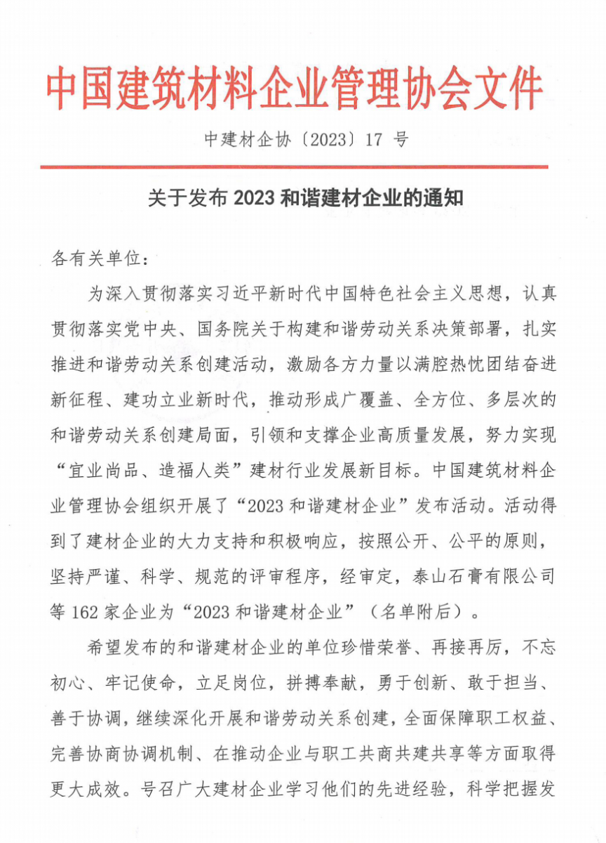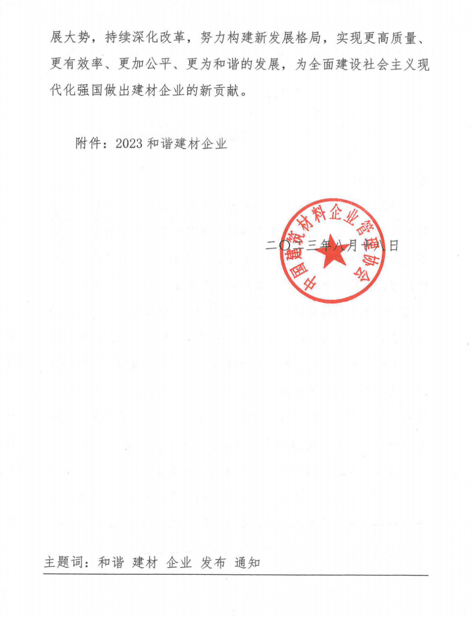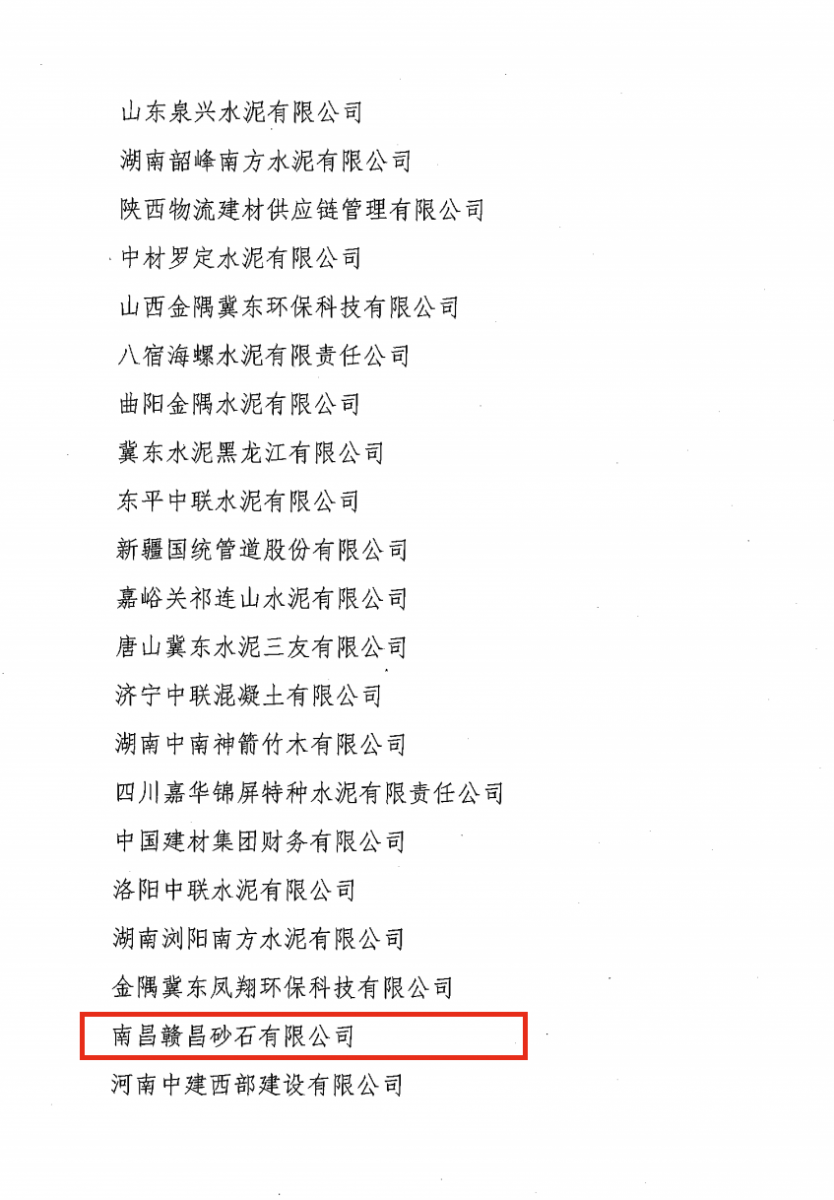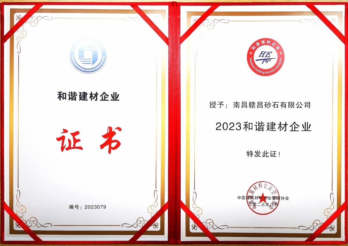 近期,中國(guó)建筑材料企業(yè)管理協(xié)會(huì)召開(kāi)了第七屆建材企業(yè)文化年會(huì),會(huì)議上發(fā)布了2023年和諧建材企業(yè),贛昌砂石公司上榜。
