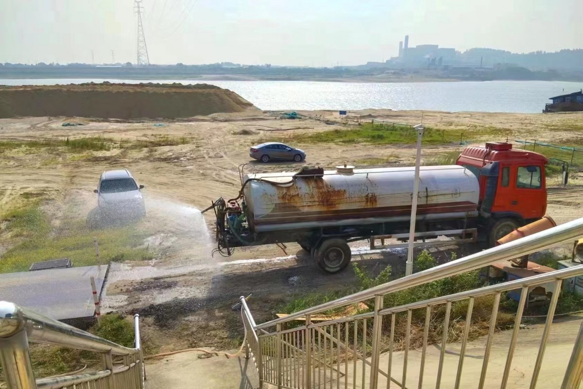 為切實(shí)降低砂場(chǎng)揚(yáng)塵,改善砂場(chǎng)周邊工作環(huán)境,劍霞砂場(chǎng)固定使用1輛灑水車對(duì)場(chǎng)內(nèi)作業(yè)區(qū)域及場(chǎng)外道路噴霧降塵,結(jié)合天氣和生產(chǎn)經(jīng)營實(shí)際情況,合理安排掃水車作業(yè)時(shí)間和作業(yè)頻次,確保砂場(chǎng)作業(yè)區(qū)域及運(yùn)輸車輛途徑的主干道揚(yáng)塵降至最低。