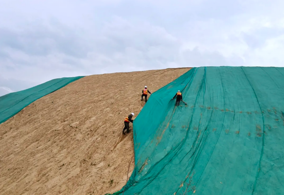 為減少強(qiáng)降雨大風(fēng)天氣造成砂場資源流失,高新銷售中心密切關(guān)注雨情的發(fā)展趨勢,監(jiān)測水位上漲情況;積極組織員工在停雨間隙,對(duì)砂場砂石覆蓋防塵網(wǎng),降低砂石資源流失,保障公司財(cái)產(chǎn)安全。
